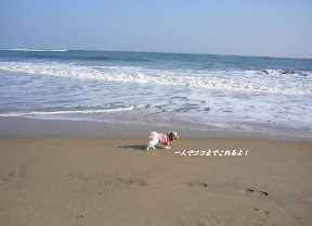 以前は波を怖がったのに、波打ち際まで行きます。